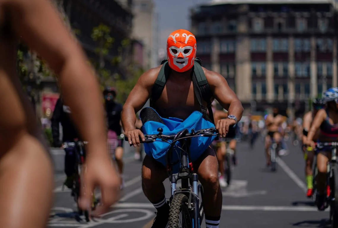 La 15 Rodada al Desnudo de la capital mexicana, organizada por el colectivo global World Naked Bike Ride (WNBR), convocó a unos 500 ciclistas desnudos, la mayoría de ellos hombres, quienes recorrieron las calles de la ciudad, entre ellas el emblemático Paseo de la Reforma, rumbo al Zócalo de la ciudad, la plaza principal de la capital mexicana, con el objetivo de hacerse visibles ante los ojos de quienes, dijeron, normalmente no los ven.
