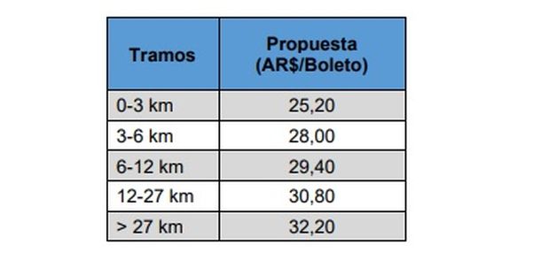 En relación a los servicios de trenes en el AMBA, el proyecto expresa como boletos mínimos con tarjeta SUBE los siguientes montos: