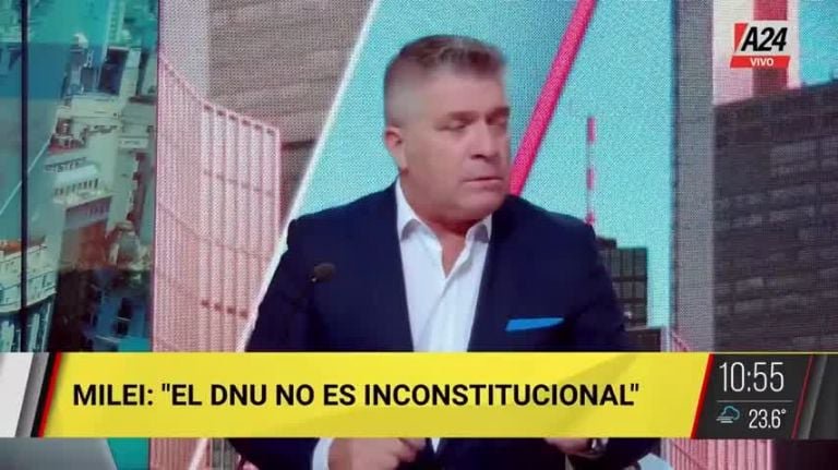 En la mencionada señal de noticias estaban compartiendo un contenido relacionado con la palabra de la vicepresidente sobre las versiones de tensión con Javier Milei, y en ese momento en pleno aire de A24 se escuchó la risa de Lucio Di Matteo, quien disparó contra Victoria Villarrruel: “Esta es una hija de p...”.